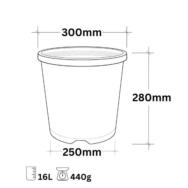 The 16L Flower Bucket 300mm – Black is a high-capacity, heavy-duty bucket designed for demanding horticultural and gardening tasks. With a generous 16-litre volume and robust construction, it is ideal for handling large quantities of soil, water, plant clippings, and other materials. Manufactured from UV-resistant black plastic, this bucket delivers reliable performance in gardens, greenhouses, and nursery environments.