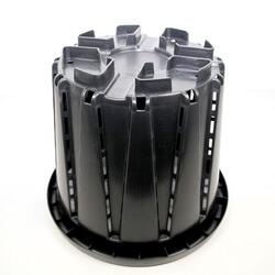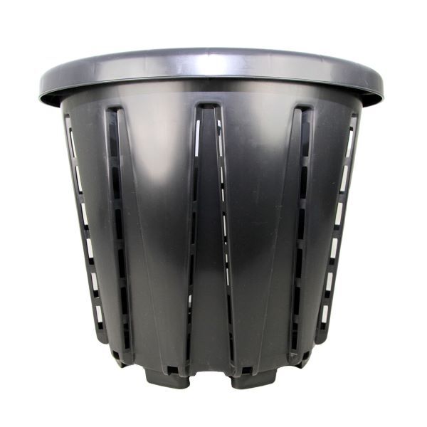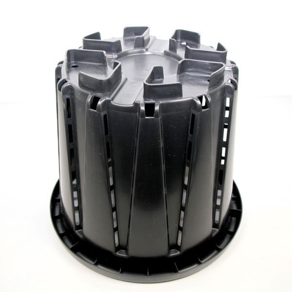 Internal vertical ribs guide the roots outward toward air-ventilated slots. When the root tip meets the air, it stops growing, which forces the plant to produce more lateral roots throughout the container.