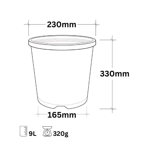 The 9L Deep Flower Bucket 230mm – Black offers extra depth and capacity, making it ideal for demanding horticultural tasks. With its deep 9-litre volume, this bucket is perfect for transporting larger quantities of soil, water, fertilisers, or plant material. Manufactured from UV-resistant black plastic, it is designed for long-term use in gardens, greenhouses, and nurseries.