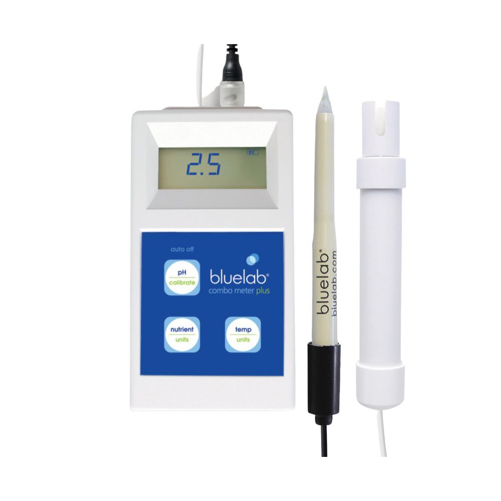 Ensure your plants grow to their full potential with the Bluelab Combo Meter PLUS, featuring a versatile multimedia Leap pH probe for accurate measurements and optimal nutrient solution management. This portable, handheld device helps you gain a better understanding of your complete growing system, making it easy to manage and monitor plant health.