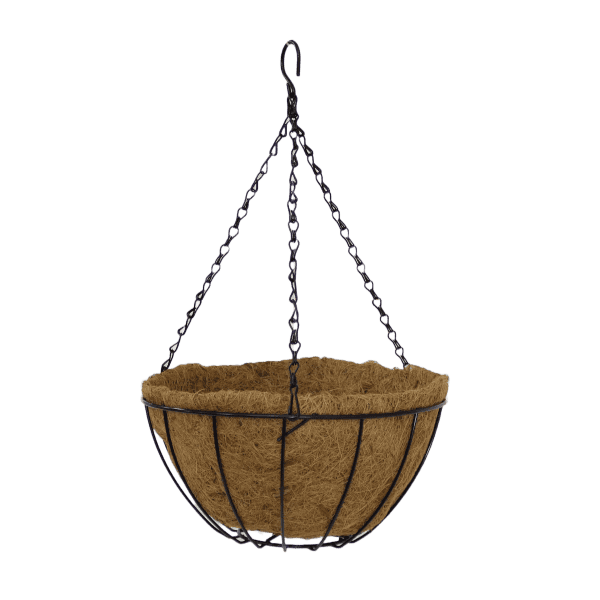 These classic wire-frame hanging baskets come complete with a water-retaining coco fibre liner, making them ideal for healthy plant growth in both indoor and outdoor environments. Designed for durability and style, each basket includes a strong 3-piece hanging chain and hook, finished with a black powder-coated frame for long-lasting performance.