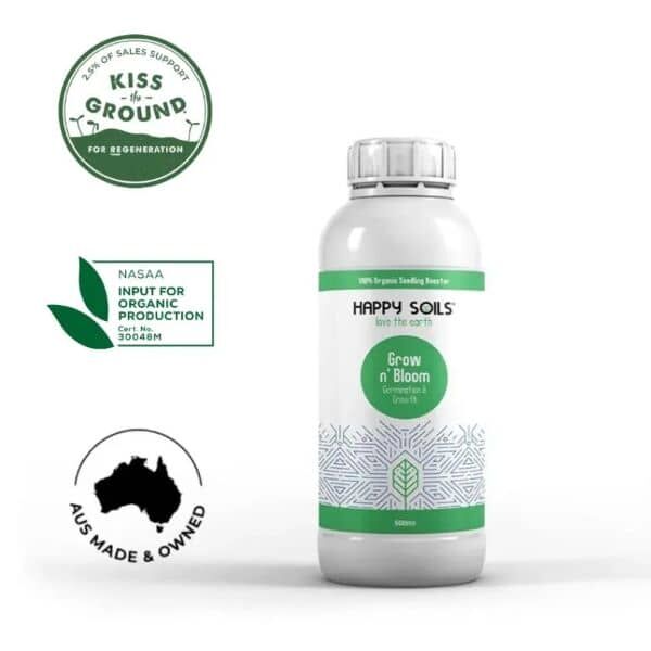 Happy Soils Grow n’ Bloom provides seedlings with an organic range of Trace Elements and Carbon that promote germination, boost immunity, and improves early seedling development.