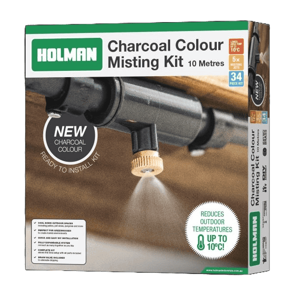 The 10 Metre Charcoal Misting Kit is perfect if you need to install a Misting System for your entertainment area. With the Charcoal kit you get everything you need to set up a misting system.