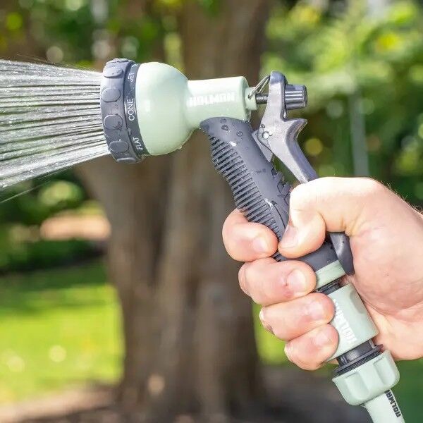 The Holman ColourDip™ Spray Gun and Connector Set – Sage – 12mm is a versatile, high-quality watering solution, perfect for maintaining gardens and outdoor spaces with ease. With a durable, ergonomic design, this spray gun includes eight adjustable spray patterns and a self-closing trigger for convenient control. The set also includes two 12mm hose connectors and a 20/25mm tap adaptor, making it easy to start watering right away.