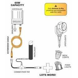 This cable is specifically designed for Holman’s Warm White Garden Lighting system. Compatibility with other systems is not guaranteed.