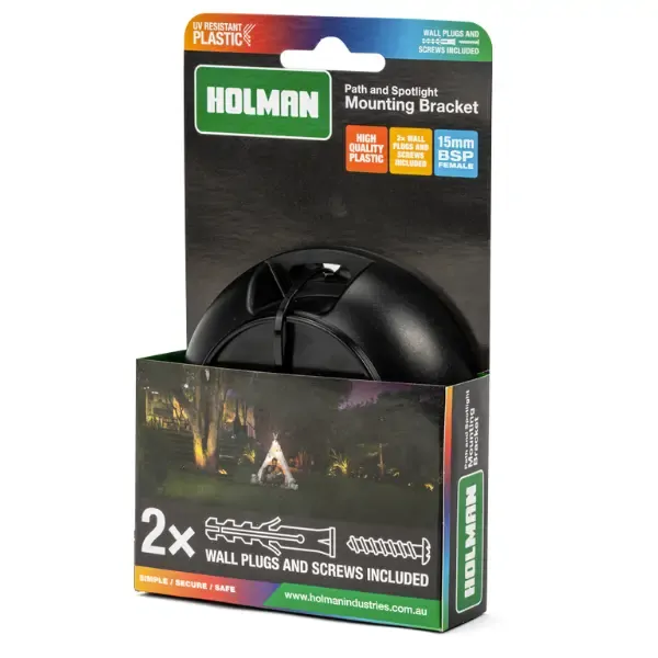 The Holman Path and Spotlight Mounting Bracket offers a durable and flexible solution for mounting garden lights in a wide range of outdoor settings. Designed for versatility, it allows you to install path lights or spotlights on walls, ceilings, or decks, giving you full control over light placement and direction. Made from UV-resistant plastic, this bracket is built to withstand harsh outdoor conditions while providing secure and adjustable support for compatible Holman spotlights.