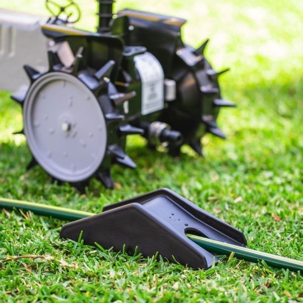 The Holman Solid Metal Travelling Sprinkler is ideal for extra large lawns. It is built extra durable with a heavy duty cast iron body. Self propelled by a 2-speed gearbox, the front wheel travels the path of the garden hose which can be placed to follow any path you need. In total, the tractor can travel up to 60m, watering an area up to 1,100m².
