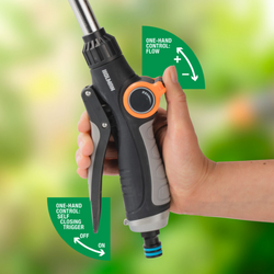 • Thumb-Controlled Flow: Adjust water flow with one hand for precise watering.