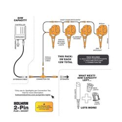 The 43mm Warm White Spotlight Value Pack is designed for quick and simple set-up. With the included Connection Tee and daisy-chained spotlights, no electrician is required. Just plug and play to expand your system and boost your garden atmosphere.