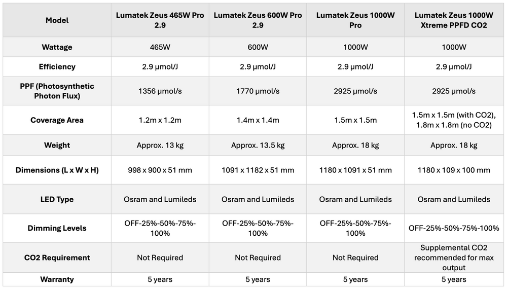 The Lumatek Zeus 1000W Pro 2.9 ensures perfect light balance and uniform coverage across large indoor grow spaces. With advanced efficiency and full-spectrum LED technology, it allows growers to optimize plant growth while reducing energy costs. Designed specifically for large-scale grow environments, it delivers even light distribution across the canopy for healthier plants and higher yields.