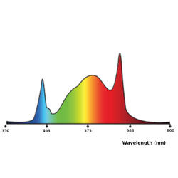 The array of LEDs create a uniform spread of light at short distance to the crop enabling single source grow lighting for multi-layer cultivation systems, single benches in low rooms and grow tents.