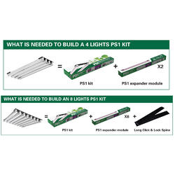 • Versatile Expansion: Build a 4-light or 8-light PS1 kit by combining PS1 Expander Modules with a PS1 Kit and Long Click & Lock Spines (if necessary).
