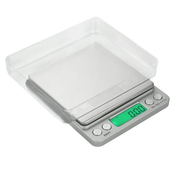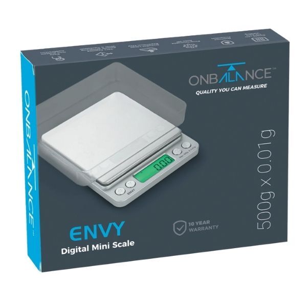 The On Balance Envy Scale NV-500 delivers precision, reliability, and user-friendly functionality—all packed into a sleek, compact design. This miniscale features a large stainless steel platform with a fine resolution of 0.01g, making it ideal for accurate weighing across a variety of applications. With its clear green backlit display, easy-to-use control buttons, and protective dual-purpose weighing trays, the Envy Scale combines practicality with performance.