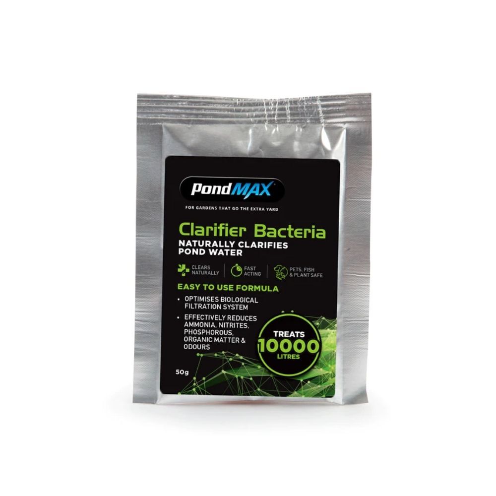 - Use the included scoop to measure the appropriate amount of PondMAX Pond Clarifier Bacteria. Add 10 grams (1 level scoop) per 2000 litres of pond water.