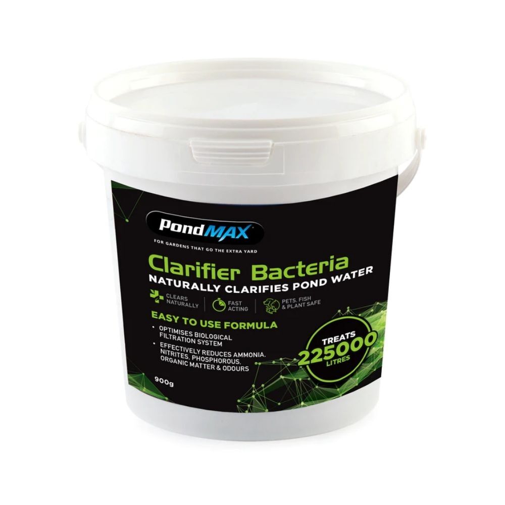 - Use the included scoop to measure the appropriate amount of PondMAX Pond Clarifier Bacteria. Add 10 grams (1 level scoop) per 2000 litres of pond water.