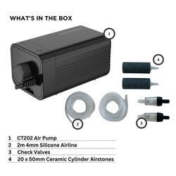• All-in-One Kit – Comes with 2m silicone airline, 2 ceramic air stones, and 2 check valves