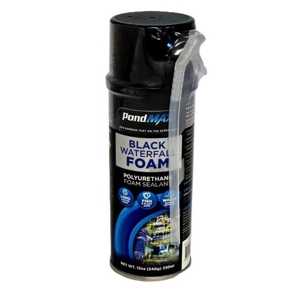 PondMAX Black Waterfall Foam is a purpose-designed expanding foam that simplifies waterfall and pond construction. It expands to fill voids between rocks and liners, helping divert water exactly where you want it while creating a natural-looking finish. Easier to apply than mortar, this foam cures quickly, resists weathering, and blends seamlessly into waterfall settings with its long-lasting black colour. Once cured, the foam is resistant to water, solvents, and harsh weather conditions. It will not crack or break down in freezing temperatures and is completely safe for fish and other aquatic life. For areas exposed to direct sunlight, the foam can be painted to protect against gradual discolouration or decomposition.