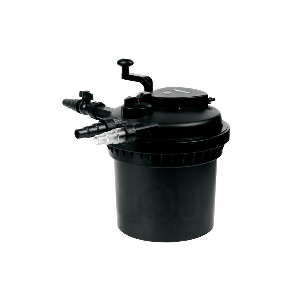 Upgrade your pond maintenance with PondMAX Pressure Filter & UV Clarifiers, ranging from PF2500UV to PF30000UV models. These high-efficiency, pressurised pond filtration systems integrate ultraviolet clarifiers to eliminate algae effectively. The modern design and user-friendly features make maintenance a breeze, and the compact design ensures efficient operation.