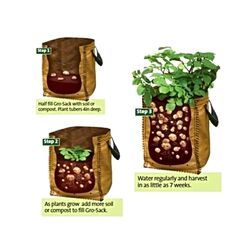 Ideal for growing 4-6 seed potatoes or deep root vegetables, Saves space and doesn't require a large garden, Made from strong, woven UV-protected polyethylene, Allows roots to breathe, promoting plant growth and higher yields, Features strong webbing handles for easy transportation, Access flap allows for hassle-free potato harvesting, Versatile for growing other vegetables like carrots and onions, Reusable and long-lasting