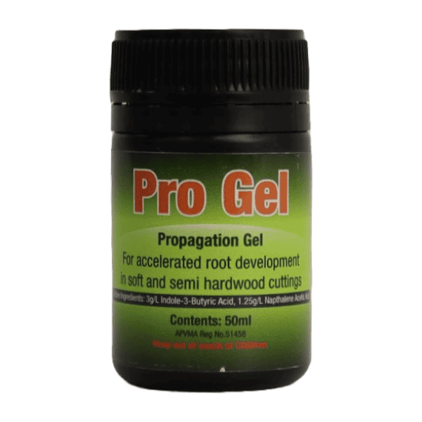 • PROGEL is a propagation gel containing the hormones IAA and NAA to promote root growth in both softwood and hardwood cuttings or cloning.