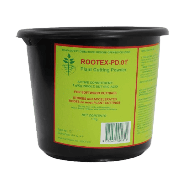 • Insert cutting in to Rootex P and shake to remove excess powder, plant cutting in propagation mix.
