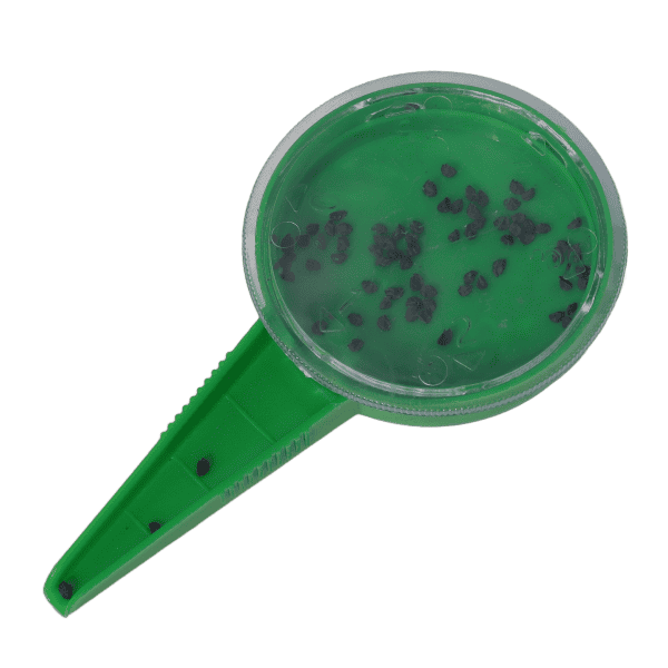 Very handy for sewing small seeds, simply select the seed size and gently shake the dispenser until an individual seed is in the spout and plant where desired.
