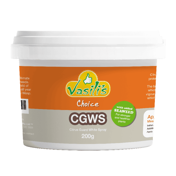 CGWS is a grade of refined kaolin mineral. When mixed with water and applied to citrus trees, it leaves a white barrier residue that stops Gall Wasps from penetrating and laying eggs in the tree. It also acts as a reflector and sun block reducing heat stress caused to citrus trees during extremely hot days.