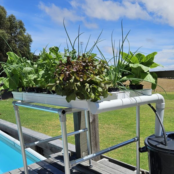 Unlike conventional NFT systems the Vegie Bench uses coir filled 90mm pots which is a more reliable than conventional systems, in the event of a power or water shortage the plants will survive for days with out attention.