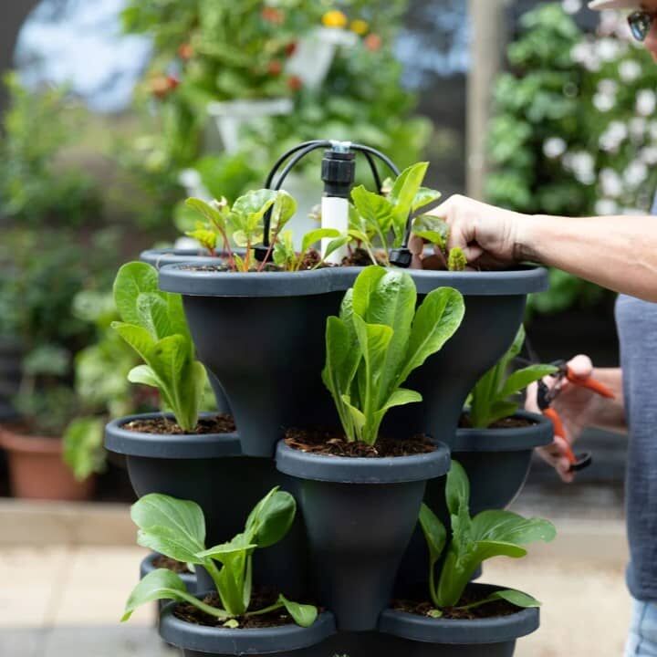 • Even watering throughout each pot opening and tier, no matter what you’re growing