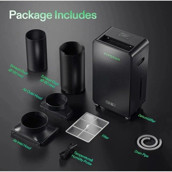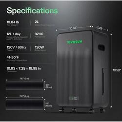 - Moisture Removal: 12L/Day (Standard) | Up to 15.1L/Day (Max)