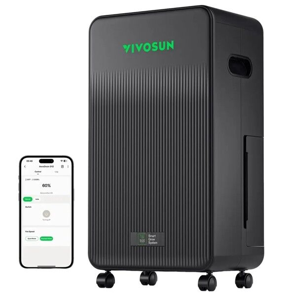 With its tool-free setup and integrated mobility features, the AeroDrain D12 fits seamlessly into tight grow spaces. Whether you are managing the heavy transpiration of a late-flowering canopy or stabilizing a drying room, the D12 offers the precision control needed to protect your harvest from humidity-related issues like bud rot and powdery mildew. Its smart connectivity ensures you are always in control, providing live data and instant alerts directly to your smartphone via the Vivosun App.