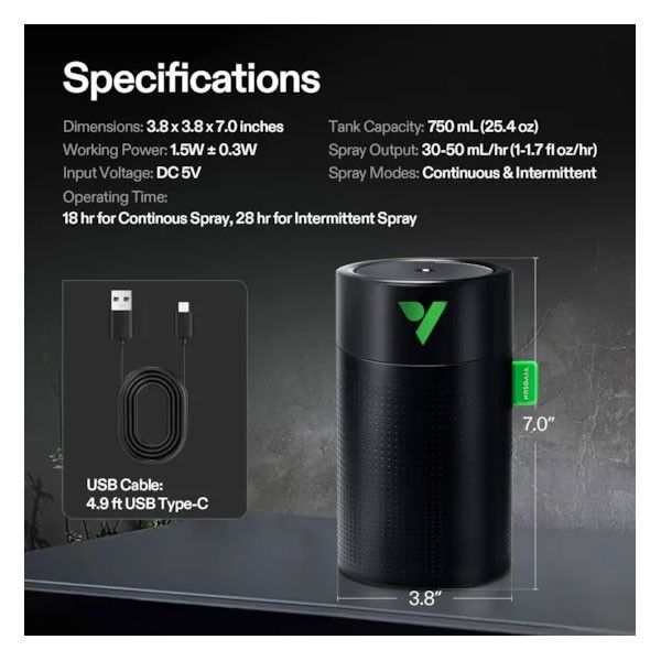 - Long-Lasting Performance: The 750mL (25.4 oz) tank delivers up to 18 hours of continuous mist or 28 hours of intermittent mist, reducing the frequency of refills.